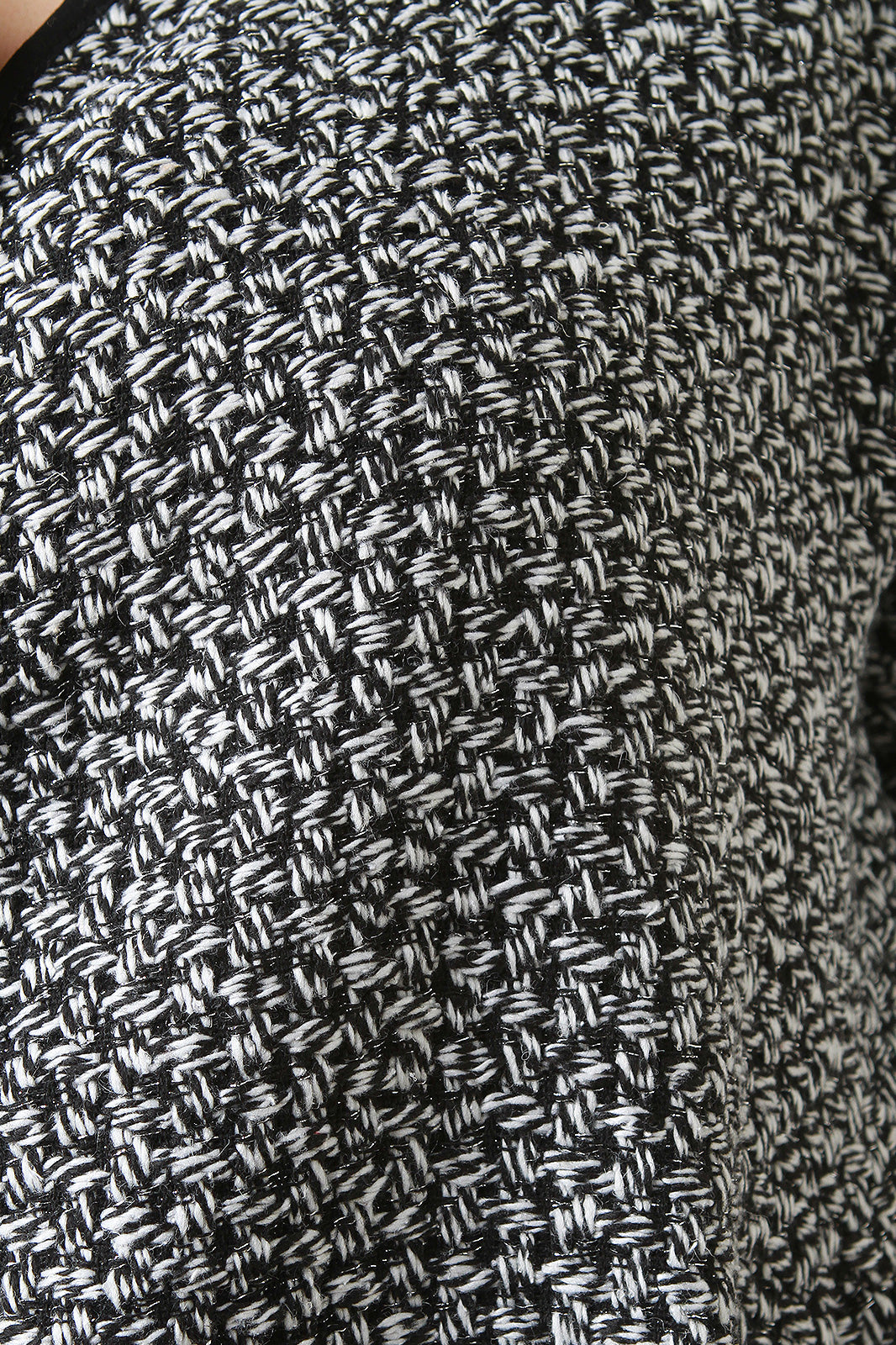 This chic plus size coat features s woven fabrication, with a sparkle thread woven in, contrast bias tape trim,front welt pockets, open front, finished with a long knee length hem.