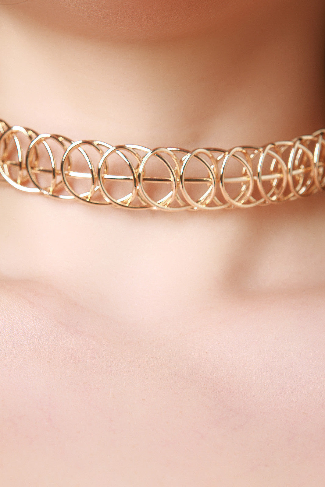 This  choker  features a wire collar design, looped design and an adjustable lobster claw closure and matching ball stud earrings.