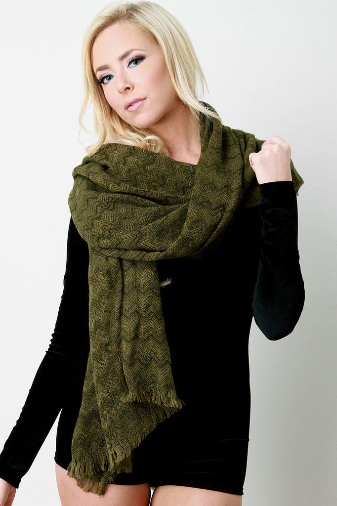 This scarf features a woven chevron pattern, long rectangular wrap around design, fringe hem and a soft touch. 100% Acrylic.