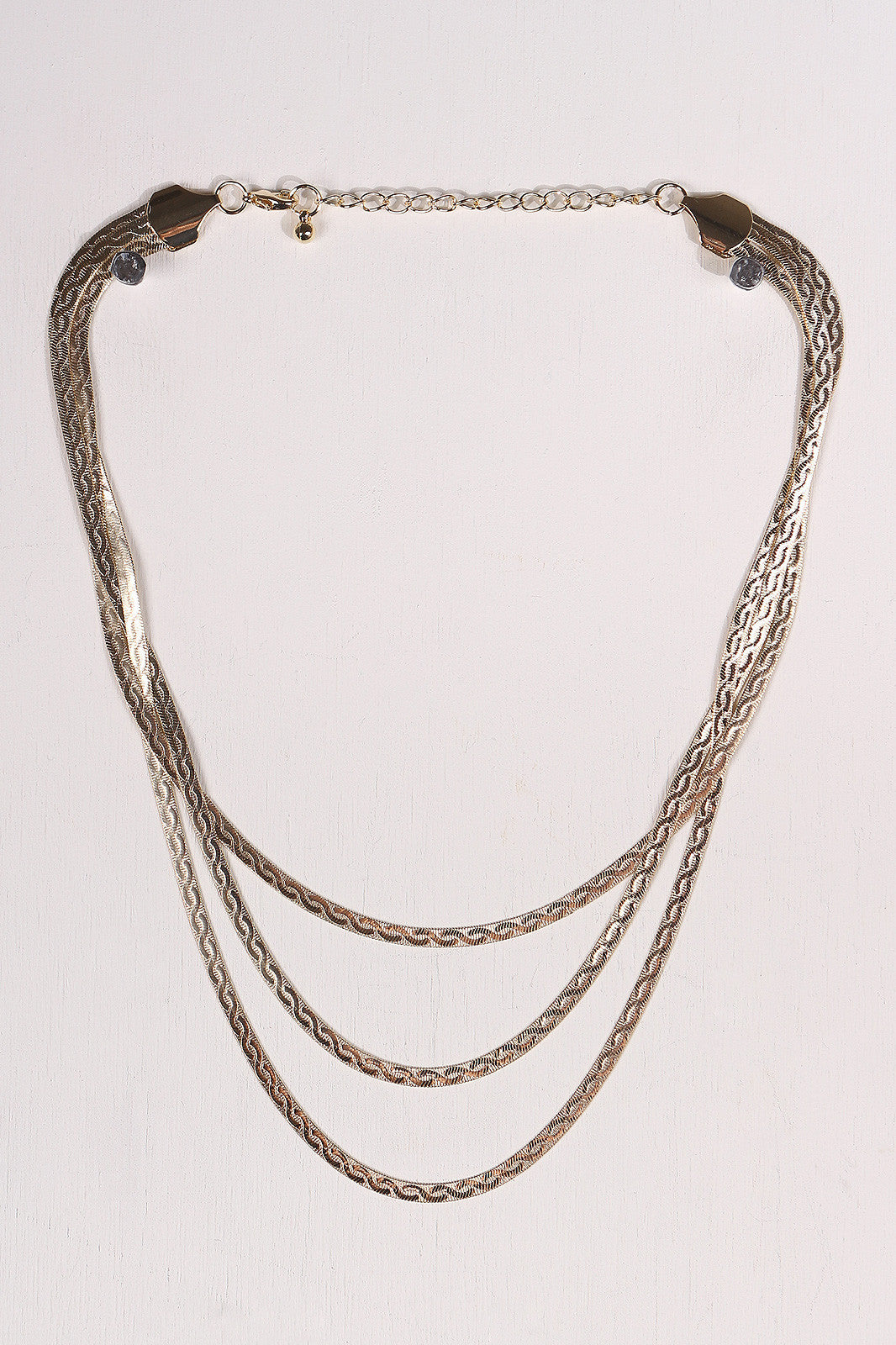 This edgy necklace features a herringbone triple layers chain, high polished design, and an adjustable lobster claw closure with an extender.