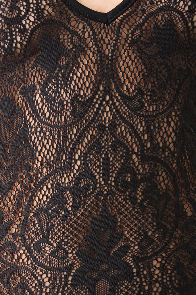 Open Back Semi-Sheer Floral Lace Jumpsuit