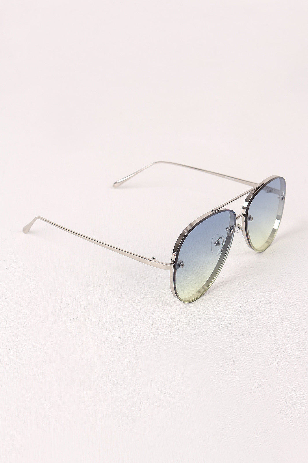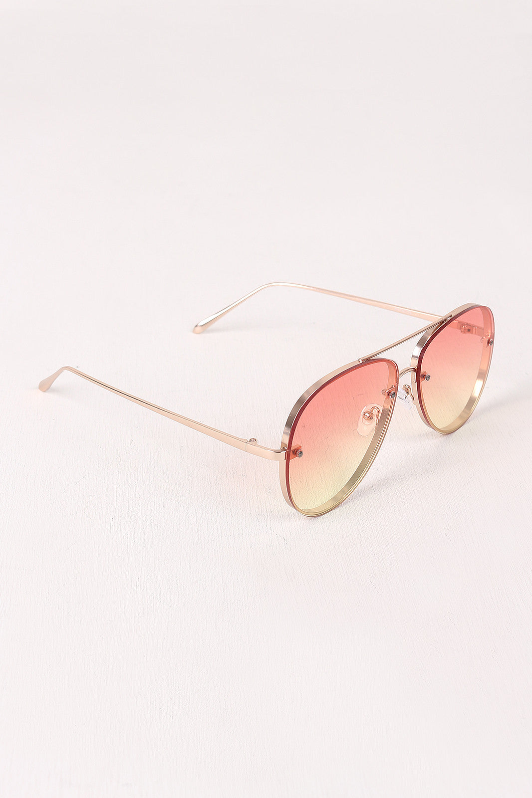 These timeless aviator sunglasses feature a gradient lenses with metal aviator frames, double bridge, thin metal arms, and nose pads for comfort.
