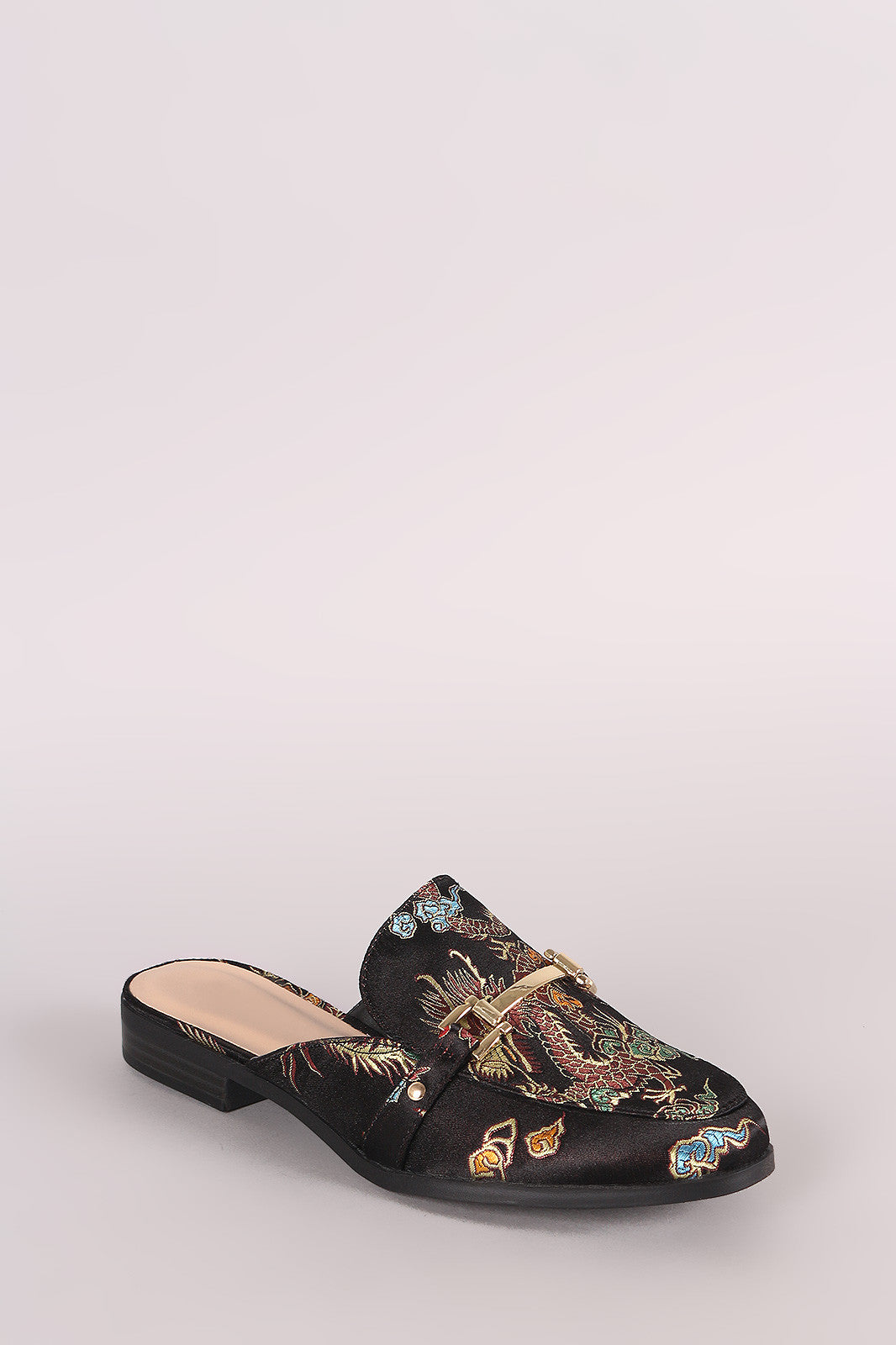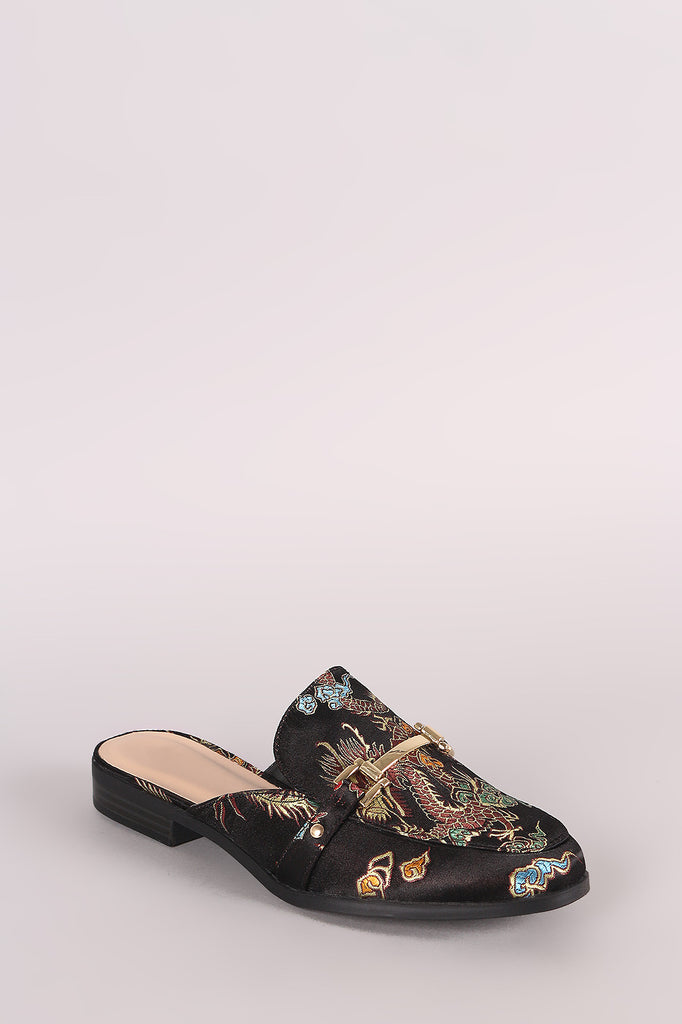 Wild Diva Lounge Oriental Embroidered Horsebit Mule Flat